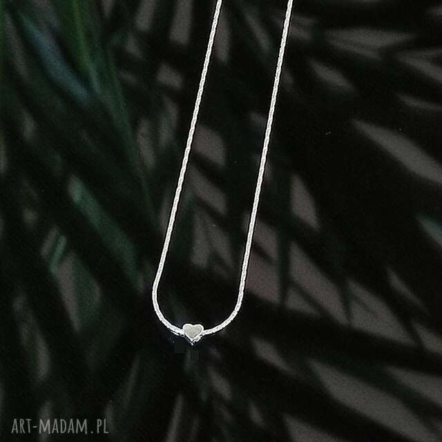 Srebrny naszyjnik typu żmijka z mini zawieszką w kształcie serduszka