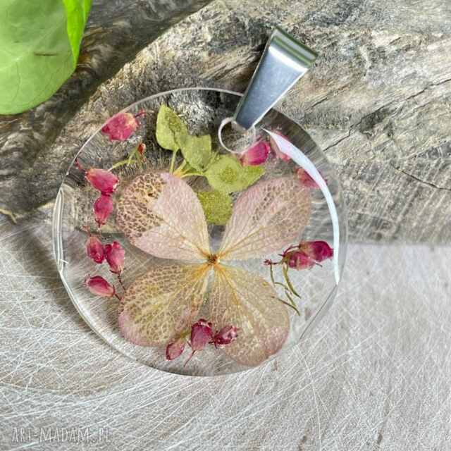 Materiał: stal chirurgiczna (zawieszka), żywica, rośliny