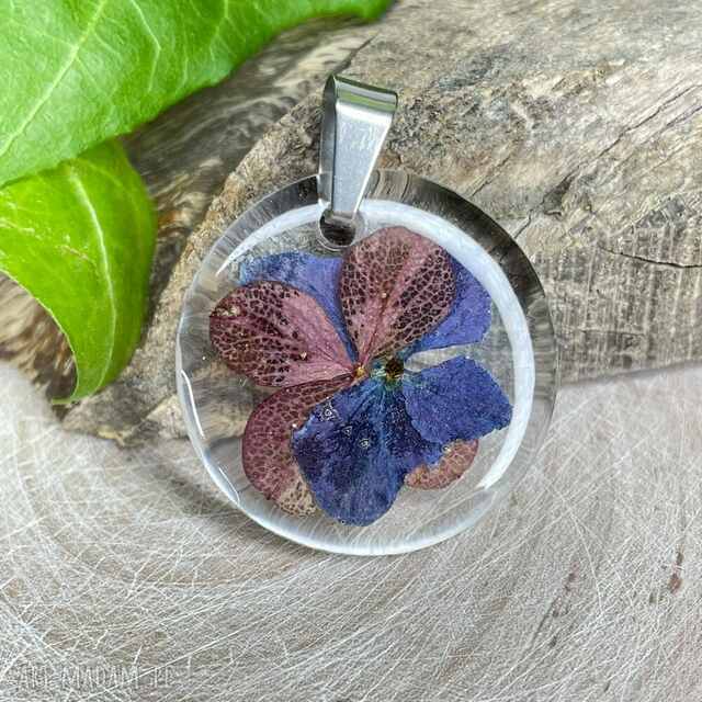Biżuteria z żywicy jest wykonywana ręcznie, co sprawia, że wisior może zawierać drobne pęcherzyki powietrza. Żywica utrwala rośliny, jednak z czasem, w wyniku procesów chemicznych pod wpływem światła, wisior może nieznacznie zmienić swój odcień. Niektóre kwiaty w jaśniejszych odcieniach mogą nabierać kremowych lub karmelowych tonów. Dodatkowo, kolor w rzeczywistości może się delikatnie różnić od pokazanego na zdjęciu ze względu na różne ustawienia monitorów.