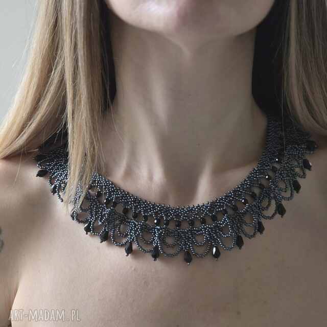 handmade elegancka kolia z czarnymi elementami naszyjniki