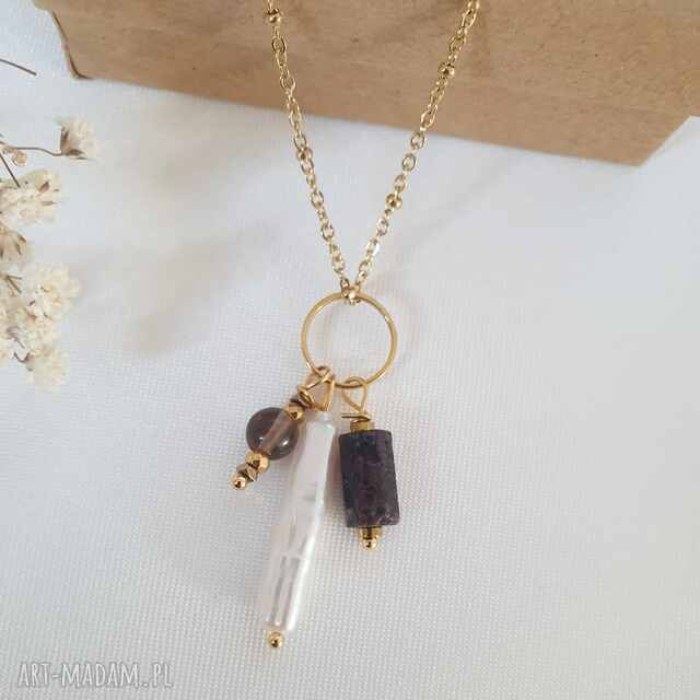 Łańcuszek ze stali szlachetnej w kolorze złotym, z zawieszką z trzema kamieniami naturalnymi: