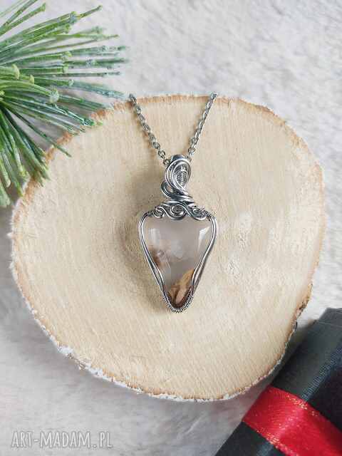 naszyjnik agat river lace "zimowy brzeg" stal chirurgiczna wisiorek handmade