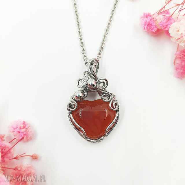 naszyjnik agat serce stal chirurgiczna wisiorek handmade wirewrapping