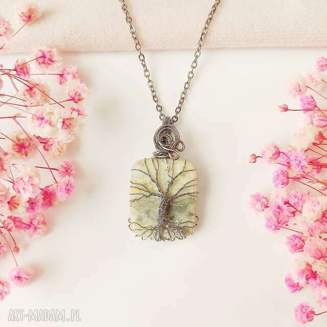 naszyjnik drzewo życia agat stal chirurgiczna wisiorek handmade wirewrapping