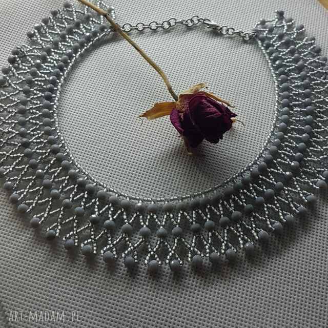 szybka wysyłkaNaszyjnik boho szary srebrny mix koralików. Naszyjniki handmade Naszyjnik szary z koralików szklanych, Koraliki różne 3 mm i kuleczki 6 i 7 mm130,00 zł