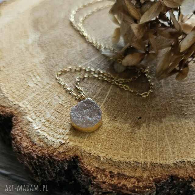 Zjawiskowy naszyjnik, w którym główną rolę gra pięknie lśniąca druza agatu w odcieniu mokka - łącząca błysk z intrygującą surowością struktury minerału. Druza agatu to agat, na którego powierzchni naturalnie występują drobne kryształy kwarcu. Zawieszka osadzona została na delikatnym łańcuszku ze stali szlachetnej.
