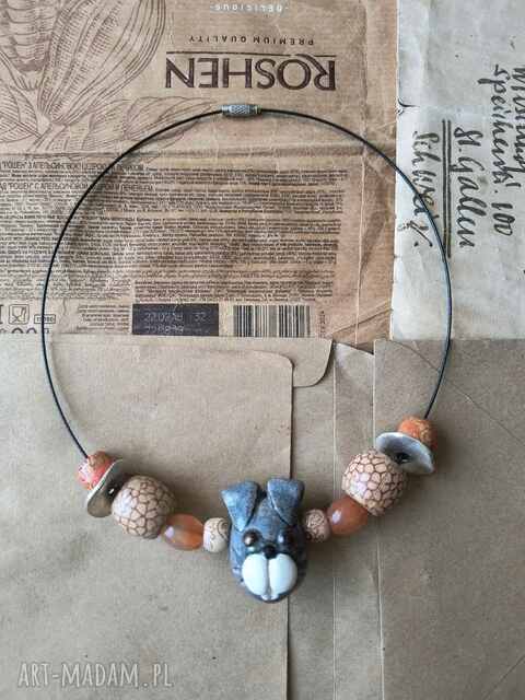 Naszyjnik ze świnką. Naszyjniki handmade Naszyjnik ceramiczny na drucianej kolii z koralikiem w kształcie głowy świnki165,00 zł