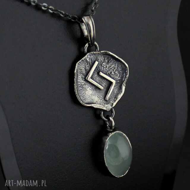 ręcznie wykonane runa jera z chalcedonem - oksydowany srebrny naszyjnik