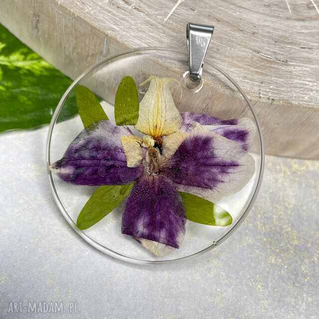 Orchidea Medalion z kwiatami naszyjnik z1727