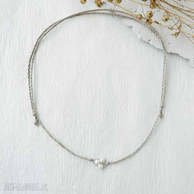 Wygodny, lekki, minimalistyczny naszyjnik wypleciony z nitek naturalnego lnu.