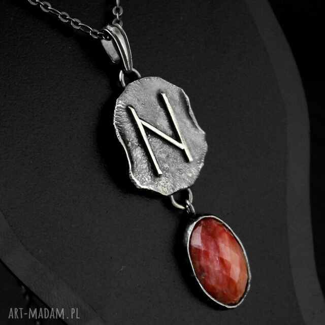 handmade runa hagalaz z różowym szafirem - oksydowany srebrny naszyjnik
