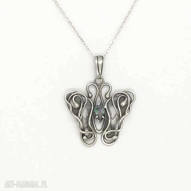 Motylek wykonany jest według unikalnego autorskiego wzoru. Motyl to symbol odrodzenia i odnowy, wzniesienie się ponad ziemskie sprawy i problemy a także symbol wolności. Fantastycznie prezentuje się na szyi.