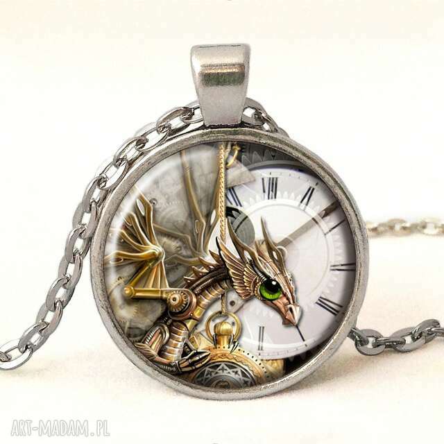 Steampunk'owy smok - Medalion z łańcuszkiem