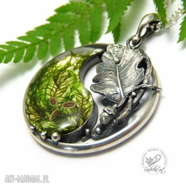 Wisior przedstawiający moją interpretację symbolu "Yin-Yang" został wykonany z oksydowanego srebra, oraz naturalnego mchu zatopionego w wysokiej jakości żywicy epoksydowej. Ten jedyny w swoim rodzaju wisior o średnicy 3,5 cm i wadze 9,5 g został zawieszony na długim, srebrnym łańcuszku o długości 70 cm. Wszystkie moje prace wysyłam w eleganckim pudełeczku jubilerskim. Gorąco polecam.