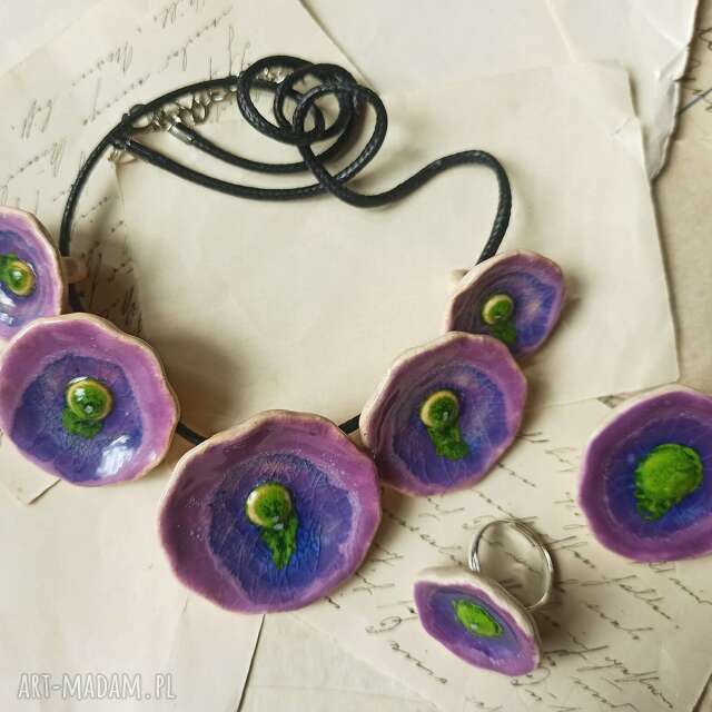 handmade zestaw biżuterii kwiatowej naszyjniki